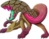 The Dontorex is a frightful, chimeric therapsid and an aggressive predator. A known maneater, it is one of many reasons why exploration of Crop Circle Canyon was delayed. Dontorexes are highly solitary, coming together only to mate and then going their separate ways; a non-mating encounter between two adults is a violent affair. The gaping jaws on their tails allow them to swallow prey much larger than they would normally seem to be able to; much like a snake's, these jaws can unhinge to accommodate for wider animals. Though large prey can make a Dontorex's stomach distended, the acid found in their digestive tract dissolves everything in mere hours. It typically swallows its prey alive and whole.