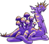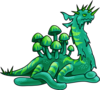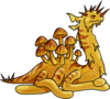Over time, the mass has formed into a slug-like creature. Its body is still fairly delicate, only able to be outside of water for a few hours at a time. While friendly, it has a habit of nudging people with its spiky head to get their attention. Mushrooms continuously grow on its back, eventually falling off the creature once they’ve grown very large. Its already slow movement is hindered further when there are too many large mushrooms growing on it at once, but severing them is an easy task.