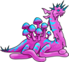 This squishy mass has mushrooms growing on it, along with two writhing tentacles. Deep blue stripes decorate its shiny surface. It’s best kept either in shallow water or a humid environment, otherwise it might dry out and die.