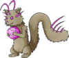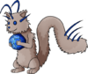 While as a baby it would mostly walk on all fours, it grows a habit of standing up as it continues aging. It has quite the affinity for rocks and gems, collecting any it happens to find. Often mistakes other objects for rocks, if said object is sufficiently shiny or rugged in texture. Feelers have started to grow on its head and tail, allowing it to sense and quickly react to seismic actions. Its claws only see use for digging through dirt, and prove to be quite good at that task.