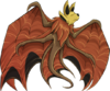 The Kreekiki is a curious animal, resembling a giant bat with four wings, and is a distant relative of the Lutreo. It lacks eyes, but makes up for its blindness with a set of four ears and long whiskers to navigate its environment. Its superb sense of hearing and shrill, high chirps during flight combine to create impressive sonar, allowing it to avoid obstacles and predators as if it had perfect vision. Its whiskers can sense even the slightest vibration in the air, and have photoreceptors near the roots, so it registers and instinctively avoids high light levels. The sensitivity of these whiskers registers not only air vibrations, but also subtle vibrations in the walls; Kreekiki are known to use this trait to fly away from an approaching Tunnelwyrm before it even knows the bat was there.