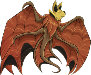 Kreekiki live in vast underground tunnel networks, where cave walls trap their sonar and give them a three-dimensional impression of the tunnels and caves around them. Though they fly to the surface to eat fruit and the occasional insect, they naturally subsist on bioluminescent moss and lichen. The photoreceptors in their whiskers let them determine where this moss grows. The patterns on their wings, however, seem to serve very little purpose for the bats themselves; they are not used to attract mates, are often too bright to serve as camouflage in the dark tunnels, and most patterns are not striking enough to intimidate predators. However, the remnants of eye sockets in their skulls suggest the Kreekiki once had eyes, and if this is the case, it is likely the wing patterns are simply leftovers of that earlier creature.