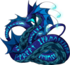 The Matmadyur Heimsins, known in short as the Matmadyur, is a spectacularly rare serpentine beast that lives primarily in deep ocean trenches. The species spends adolescence in shallower, coastal waters, preying on smaller fish and aquatic mammals; however, when they reach maturity, they begin moving into deeper water. Eventually its prey of choice shifts from coastal fare to much larger oceanic animals, including whales and smaller specimens of its own species. The Matmadyur is known to grow to great size as they grow older, and an upper limit has not been discovered. A mature adult can reach such great lengths that it becomes difficult to tell which way the coiling body is going, as its fins can easily bend in either direction; only its ventral scales are reliable for telling the beast's orientation.