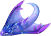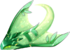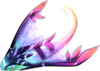 This stone-like object has a glassy texture and a multicoloured lustre. It's remarkably lightweight for its size and seems to fall more slowly than other objects. Spikes on each side carry slit-like cracks which reveal a brightly glowing inner portion, but it doesn't seem to be hollow. This casts a faint light in dim conditions, but outright acts as a light source when it's completely dark.