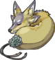 This tan, speckled puppy has four ears, a small plant growing at the end of its spine, and spends much of its time hiding and napping. It's very clumsy and unsteady, but it seems very aware of where you are when you approach it.