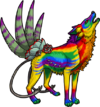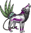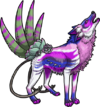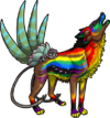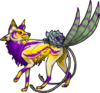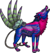 The Painted Kalak is a Seasonal creature released on Protochroma. It is found only in the Elusive Oasis, a seasonal Sector available only during the summer season, but can be bred for very rarely outside of its season. It has not yet appeared in any Delve. Its standard variant is Gold.