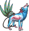 The puppy has grown into a lanky adolescent canid, and has grown rows of cactus-like spikes along its sides. It spends most of its time playing, and its colors are getting steadily more vivid, with the spots blending together into stripes. The plants on its body have grown significantly. It seems to primarily use its ears and the heat pits on its face for navigation, and still trips over inanimate objects sometimes.