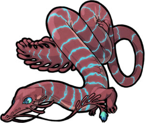 The Selm is an Uncommon creature released on Protochroma during Beta. It is found only in Mining Site S, its associated Limited Run Delves, Kreekiki Crevice, Updog Overhang, and Vullux Den, and Simulated Delve associated with its grouping, Reptilian Rendezvous. Its standard variant is Red.