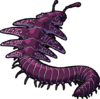 The egg hatched into a baby myriapod with a dull exoskeleton broken up by bright circuit board patterning. It crawls around aimlessly and eats decomposing vegetation, mold, and rusted metals. It curls up into a protective ball when startled.