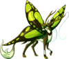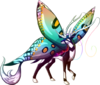 The fawn has begun to walk and prance around. The sacs on its body have burst, revealing two pairs of colorful, delicate wings which let it flutter about for short periods of time. Its horns have grown longer, allowing its feelers to swing freely from the tips. Wherever it goes, it attracts other creatures to gather around it, even those of particularly unfriendly species. Even researchers and handlers feel compelled to follow and take care of it.