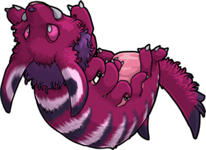 The Updog is an omnivorous creature found in caverns, particularly around Mining Site S. They are notable for their frequent habit of staying to the highest reaches of whatever space they are living in, hence the name. Updogs frequently hunt by dangling from the ceiling, staying attached by their rear few sets of paws and reaching for anything that brushes against them. When they feel something, they grab onto it and attempt to wrap it in their sticky silk, then attach it to the ceiling to share with the others in their pack. They also forage for mosses and fungi. They find Fungusmonger mushrooms particularly delicious.