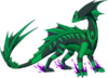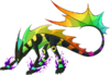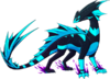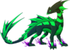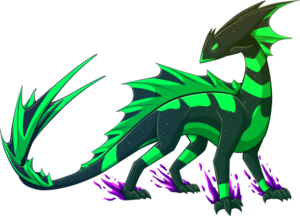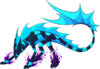 The shell cracks with surprising ease from the inside, and a strange reptilian creature uncurls from its long confinement. The creature's eyes are a bright neon green, as are the long fins on its back and tail. The hatchling is curious and inquisitive, but also largely quiet. Despite its quietness, the creature seems to have boundless energy, running around its allowable space, jumping onto high perches, getting into supplies, and seeking out any source of water large enough to swim in. When it gets particularly excited, the air beneath its paws seems to waver and shimmer strangely.