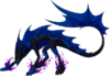 Voidwalkers are a strange species, as intelligent as any other sapient life and yet utterly disinterested in formal communication. From what researchers are able to glean from their limited interactions, Voidwalkers are not native to Chroma at all, despite how well they have adapted to the environment—it seems they are able to quickly travel long distances via use of self-created portals. These portals can be created at will, but the Voidwalker passively creates them beneath and behind their paws when agitated or mobile. Though they can communicate verbally after learning the target language, they favour their natural, emotion-based telepathy. A Voidwalker's face is inexpressive, but its fins display clear emotion. Males carry dark black striping on these fins, thought to be intended to make them appear torn, as if he has participated in and survived many battles.