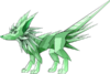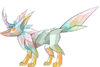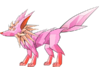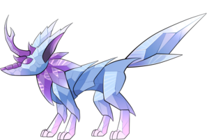 Vullux are curious constructs of living crystal. Resembling foxes in their body structure and behaviour, the nature of their crystalline growths is such that individuals can vary wildly from each other in appearance—one may be covered in spikes, while another may be smoother in appearance or have horns. This crystal is translucent and naturally blue in colour, but adults can be seen in a vibrant array of hues and accent colours, all mimicking known types of gemstone. Vullux make shrill yips when startled or threatened, but can also make a variety of friendlier vocalizations when socializing. They seem easily tamed and are quite social with both handlers and other specimens of their species.