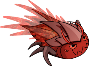 The egg has hatched into a pupa-like arthropod with bright red eyes and feelers. Most of its body is covered in a shell that’s always warm. While it scoots its way along the ground like one would expect, it also has a surprisingly good jumping ability. If allowed, it’ll freely climb to the tops of counters and repeatedly jump off of them, seemingly unharmed after each landing. Spends most of the daytime resting, and is typically active during the night.